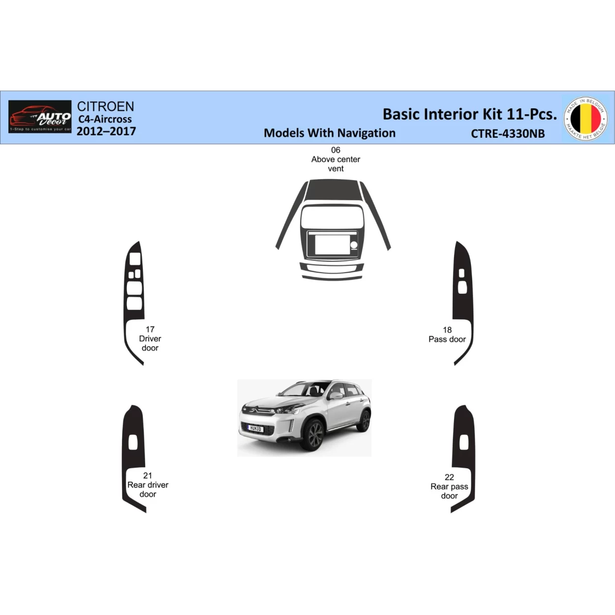 Citroën C4 Aircross 2012-2017 Interior WHZ Basic Dashboard trim kit Navi 11 Parts