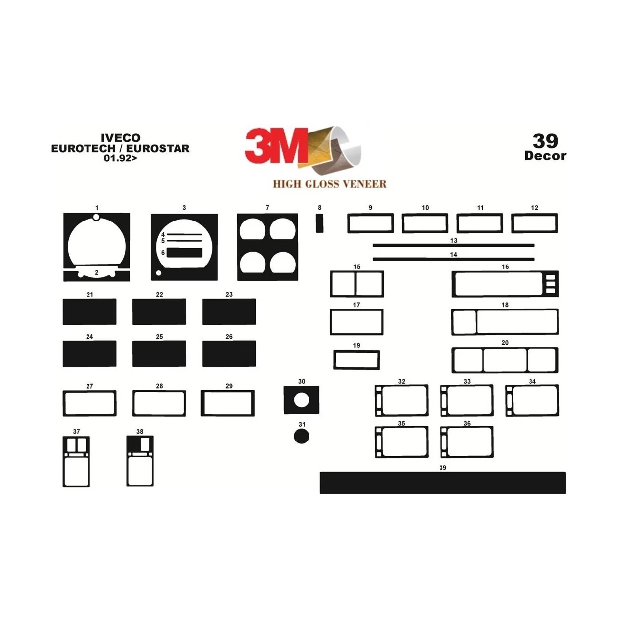 Iveco Eurotech-Eurostar 01.92-01.00 3D Interior Dashboard Trim Kit Dash Trim Dekor 39-Parts