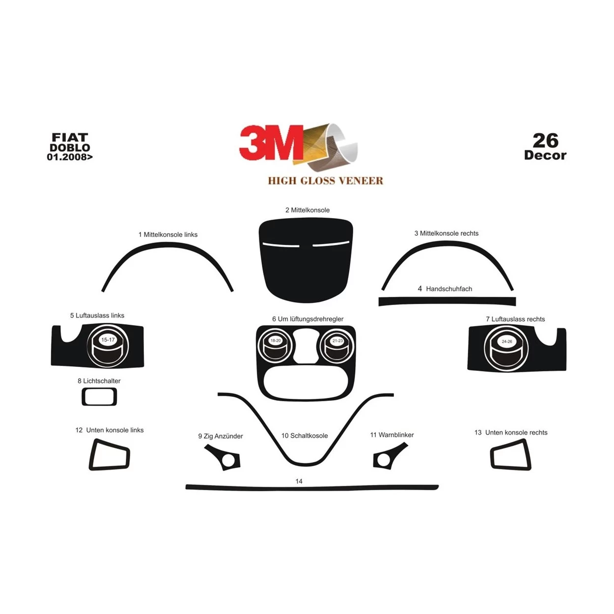 Fiat Doblo 01.01-08.09 3D Interior Dashboard Trim Kit Dash Trim Dekor 26-Parts