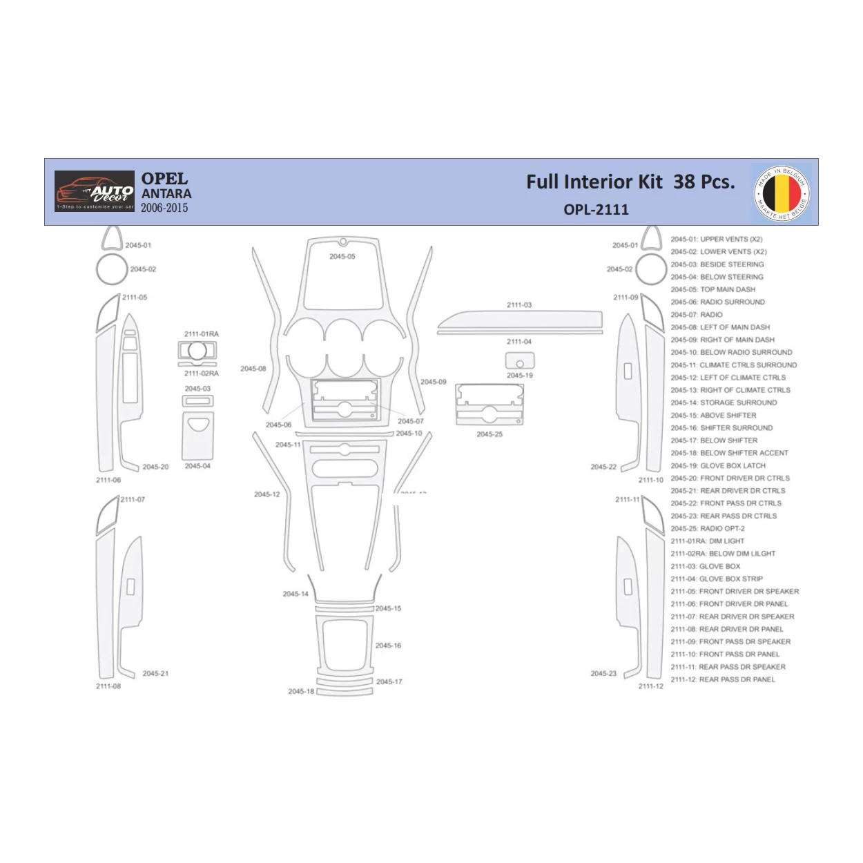 Opel Antara 2006-2015 Interior WHZ Dashboard trim kit 38 Parts