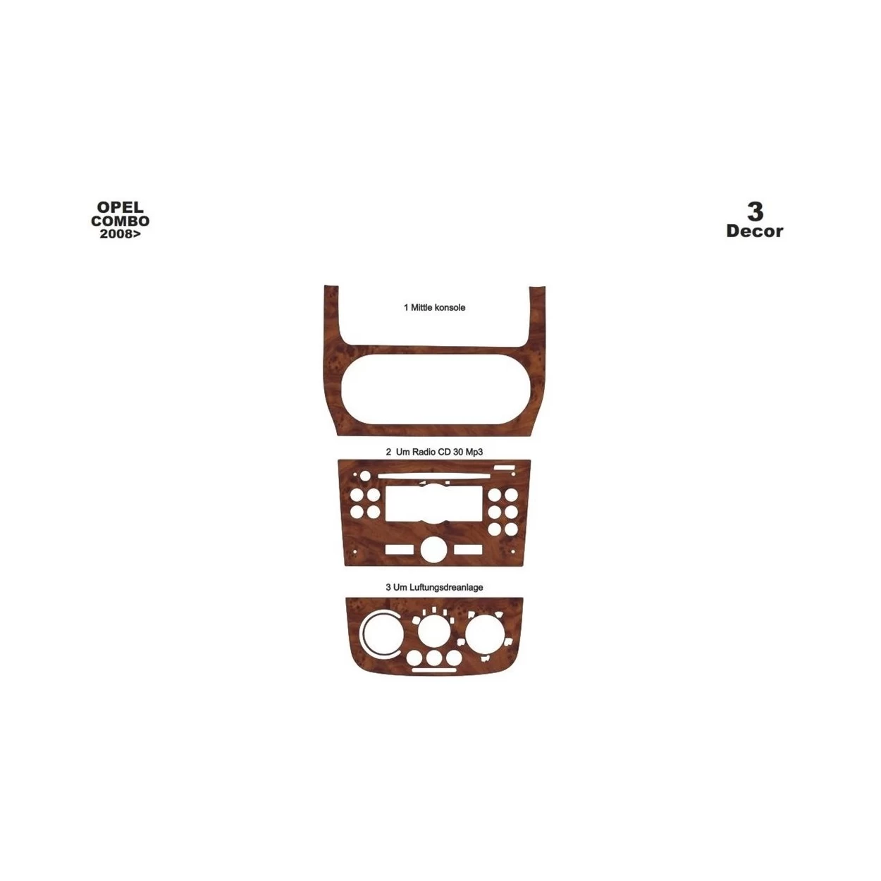Opel Combo 01.2008 3D Interior Dashboard Trim Kit Dash Trim Dekor 3-Parts
