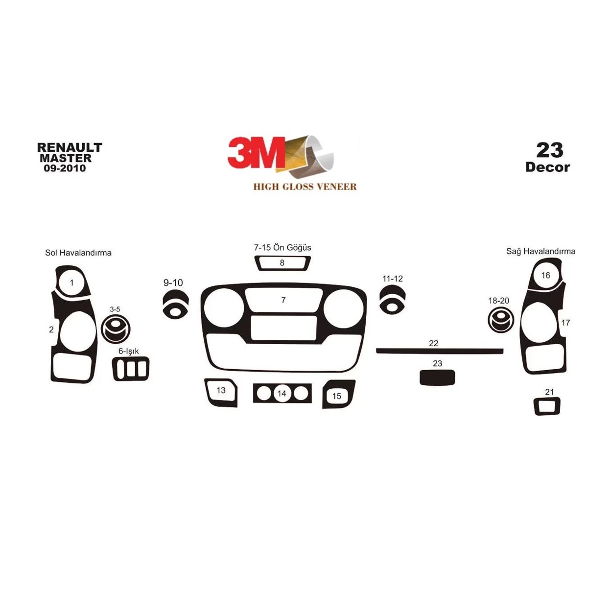 Opel Movano 01.2010 3D Interior Dashboard Trim Kit Dash Trim Dekor 23-Parts