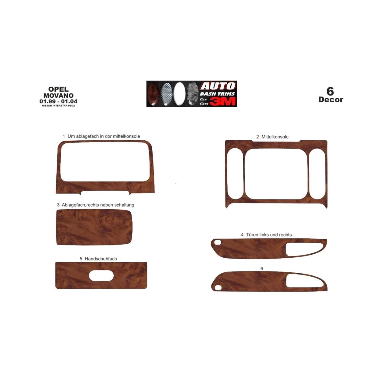 Opel Movano 01.99-12.03 3D Interior Dashboard Trim Kit Dash Trim Dekor 6-Parts
