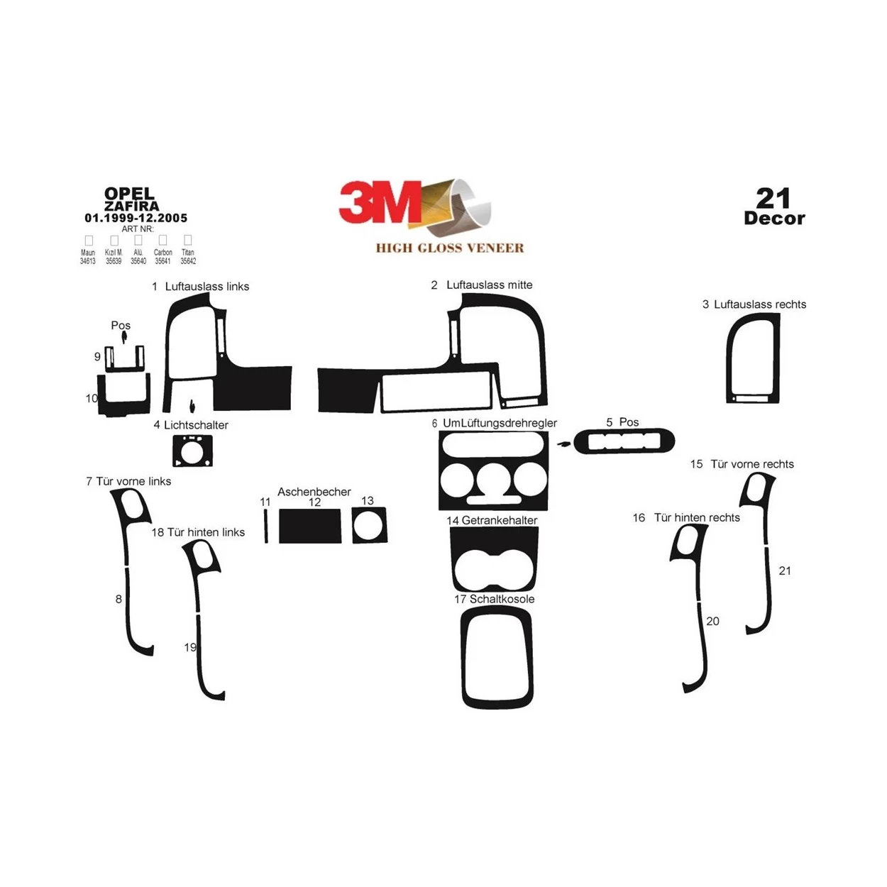 Opel Zafira A 01.99-12.05 3D Interior Dashboard Trim Kit Dash Trim Dekor 21-Parts