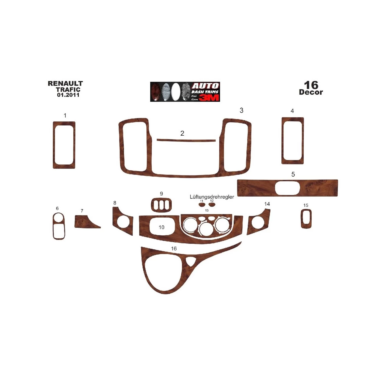 Renault Trafic-Nissan Primastar 01.2011 3D Interior Dashboard Trim Kit Dash Trim Dekor 16-Parts