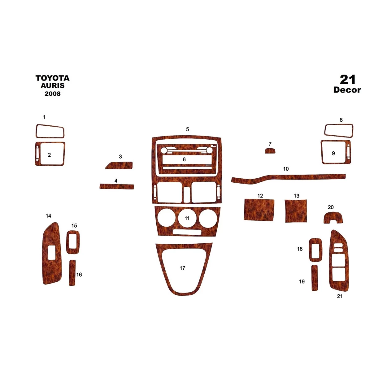 Toyota Auris 01.2008 3D Interior Dashboard Trim Kit Dash Trim Dekor 16-Parts