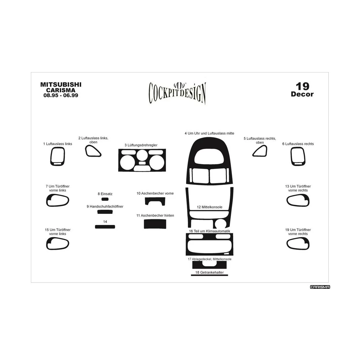 Mitsubishi Carisma 08.95-06.99 3D Interior Dashboard Trim Kit Dash Trim Dekor 19-Parts